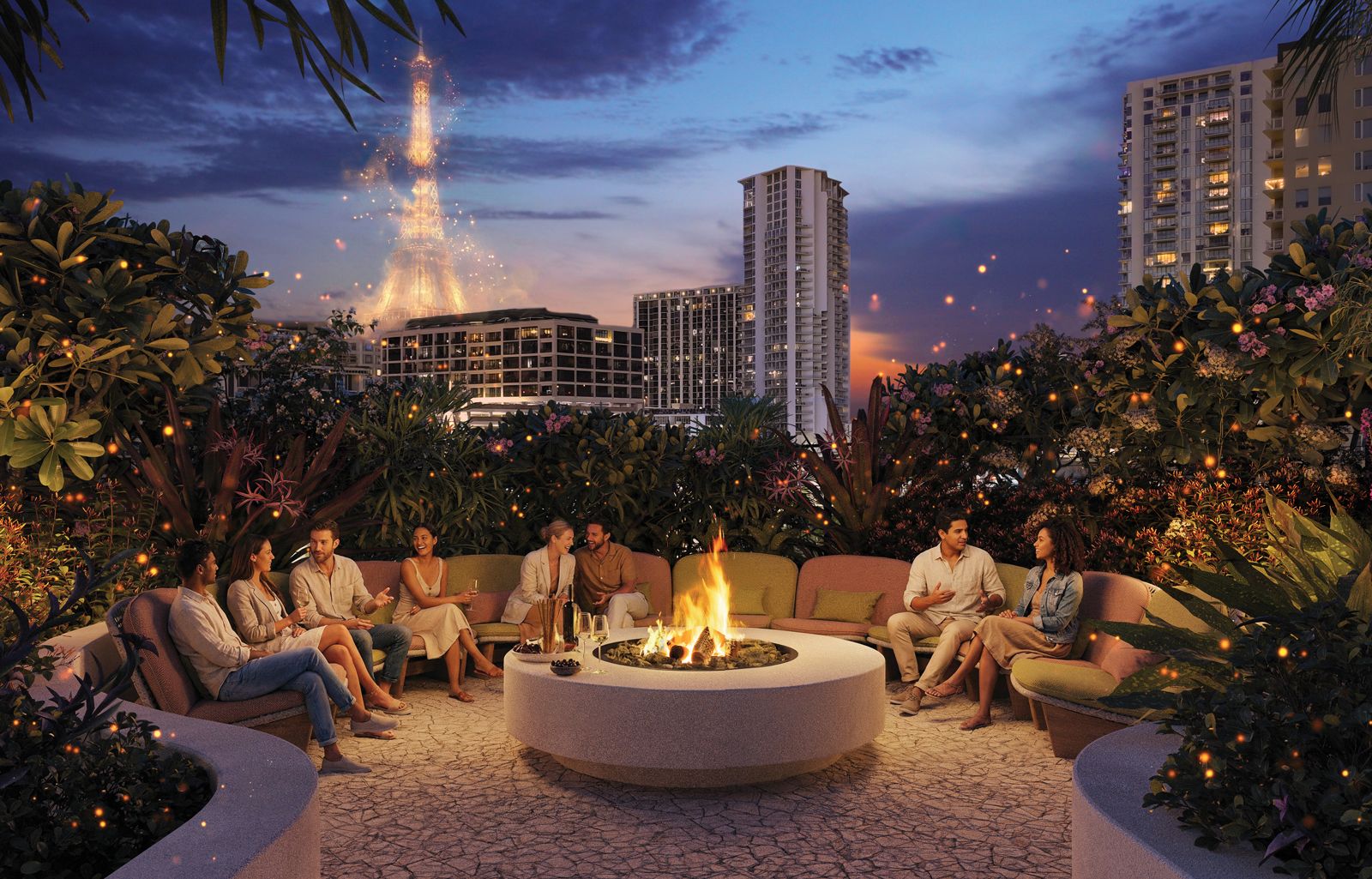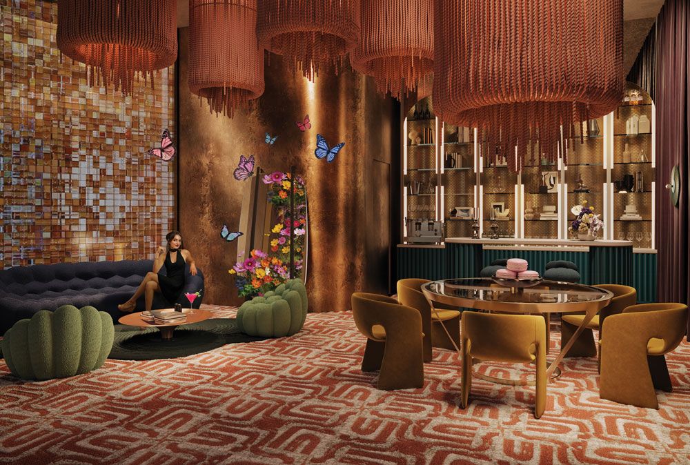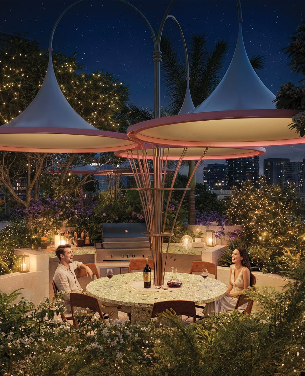 The open-air Pool Deck is a sun-soaked retreat, designed with leisure and luxury in mind. Dive into the 1,625-square-foot pool, unwind in a private cabana, or soak in the transparent cantilevered jacuzzi overlooking the art plaza below. With daybeds, a sundeck, and a poolside gathering area serving fresh juice and snacks, every month here invites you to relax in style.